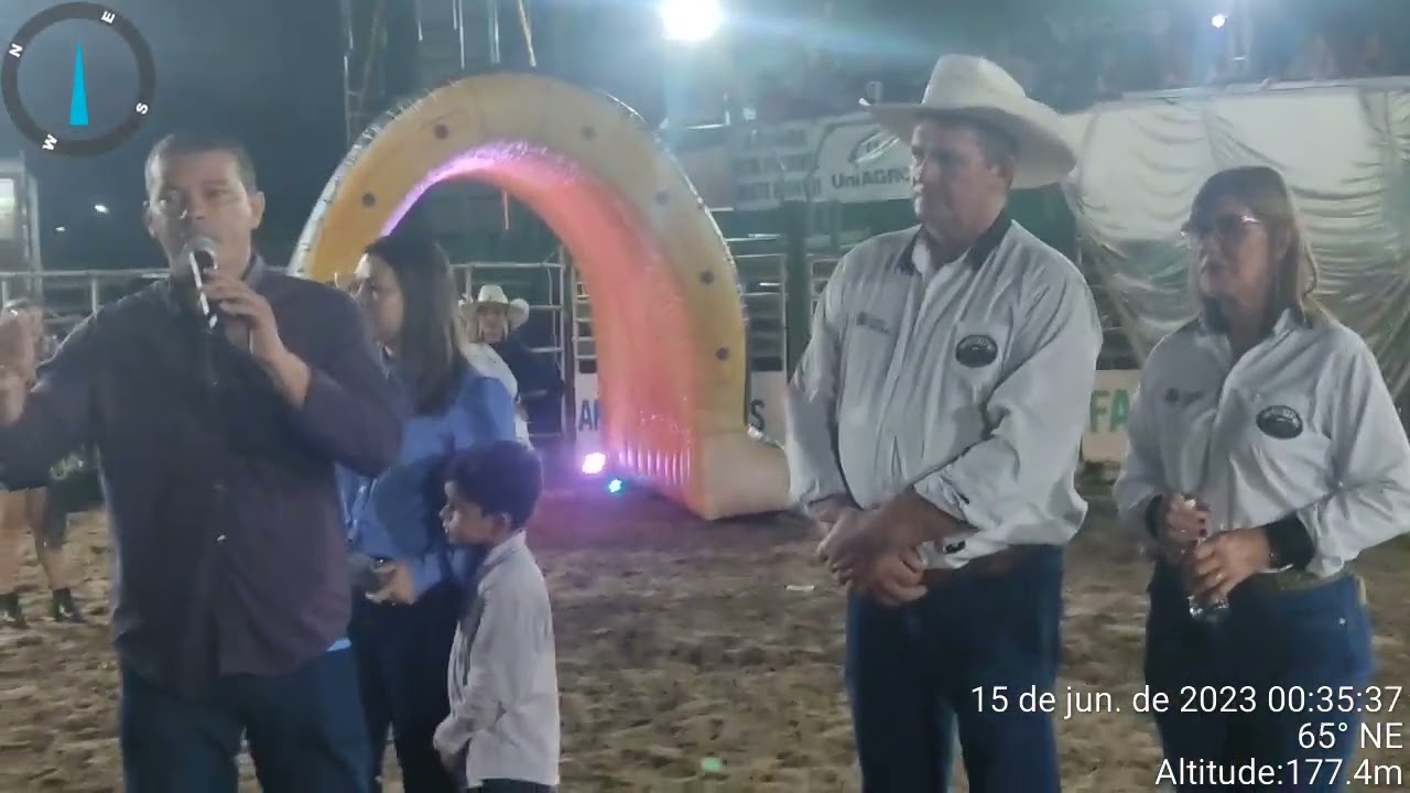 Após a cerimônia de abertura, teve início a primeira noite do rodeio, com montarias em touros. A narração é de Sidimar Gomes.