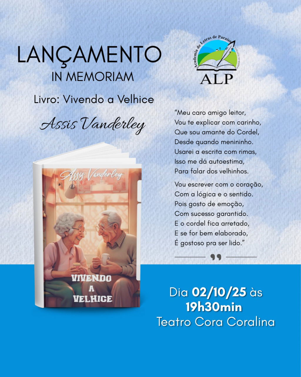 A aparição desta importante obra em versos, falando sobre a longevidade acontecerá no dia 02 de outubro de 2025, no Teatro Cora Coralina, em Paraíso do Tocantins, nesta quinta-feira. Toni Ferreira, que já prefaciou livros do confrade Assis Vanderley, garante que sua veia poética tem o poder de nos impactar com raridades encontradas em suas rimas cativantes.