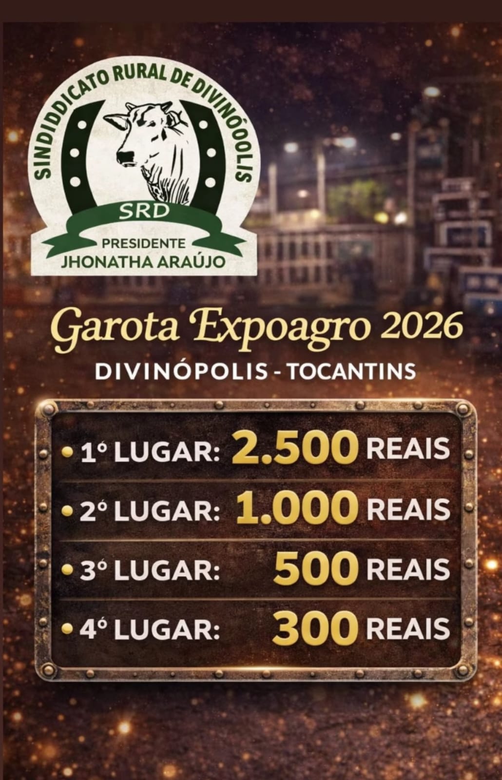 O Sindicato Rural de Divinópolis do Tocantins anunciou a abertura das inscrições para o tradicional concurso de beleza Garota Expoagro 2026, um dos momentos mais aguardados da Exposição Agropecuária do município.De acordo com a organização, a grande vencedora do desfile receberá premiação de R$ 2.500 em dinheiro.