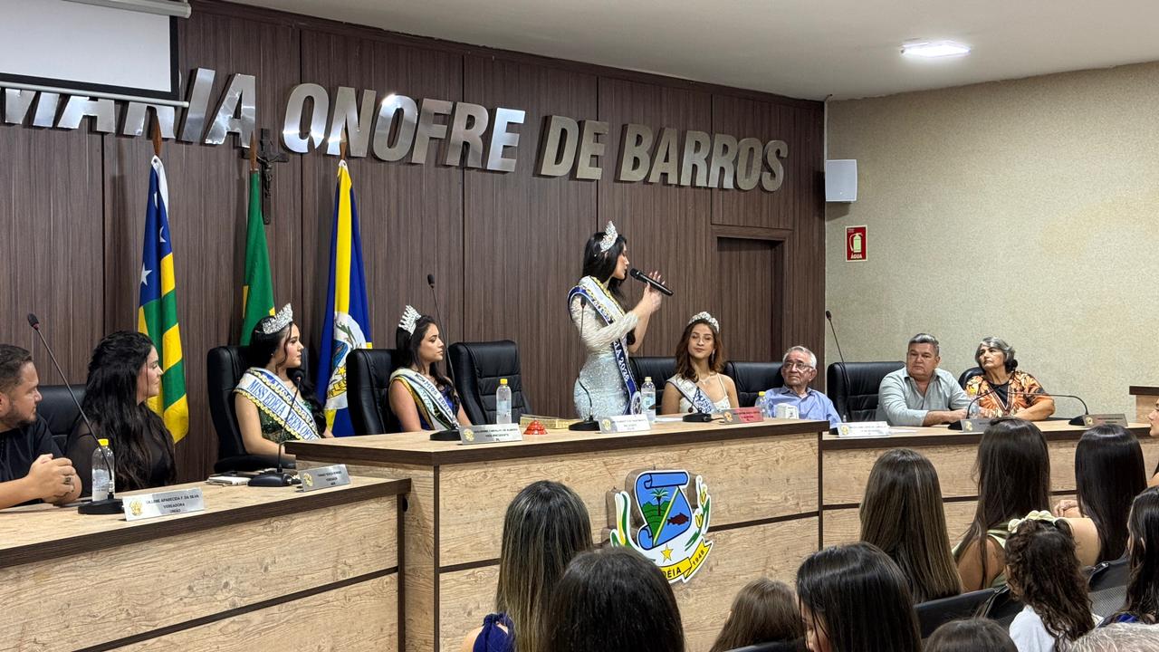Verônica se apresentou no parlamento de Edéia, em 06 de janeiro de 2026, quando foi coroada Miss - Imagens: Ascom/Divulgação