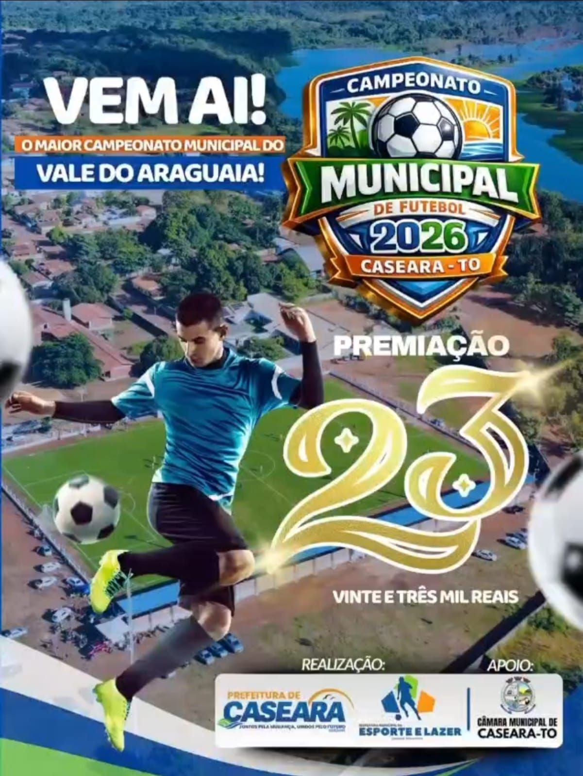 A gestão municipal de Caseara anunciou neste início de fevereiro de 2026 que o Campeonato Municipal de Futebol contará com uma premiação total de R$ 23 mil, reforçando o compromisso da administração com o incentivo ao esporte local. A competição, que é uma das mais aguardadas do calendário esportivo do município, terá em breve a data oficial de início divulgada pela Prefeitura.