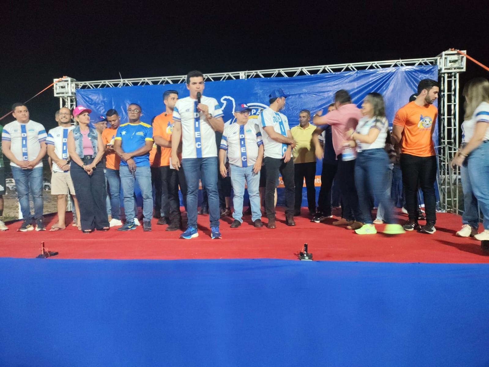 Prefeito Irmão Geciran discursou após o jogo - Foto: Edsom Gilmar