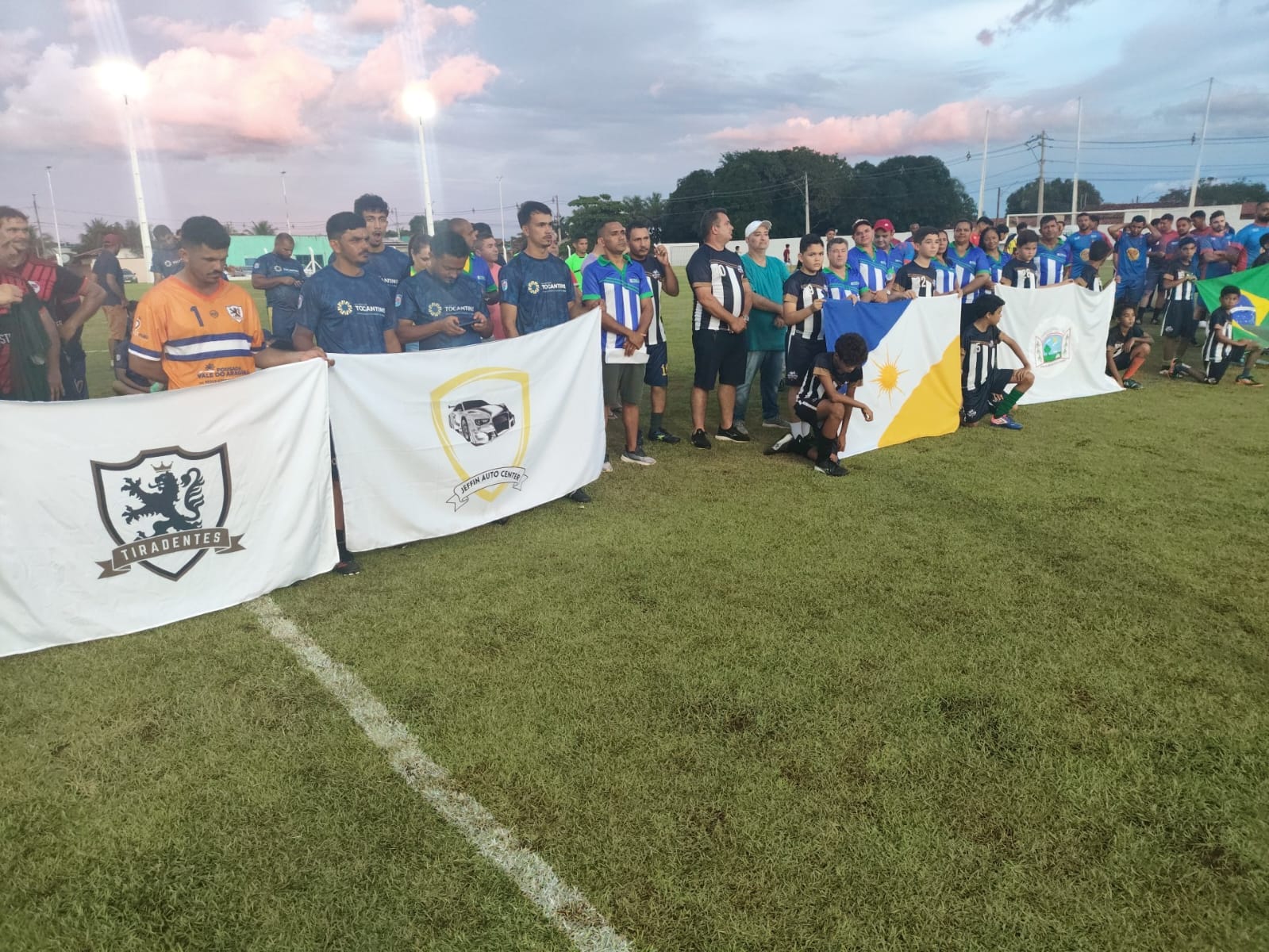 Equipes perfiladas na cerimônia de abertura do Campeonato Municipal de Futebol de Abreulândia - Foto: Edsom Gilmar