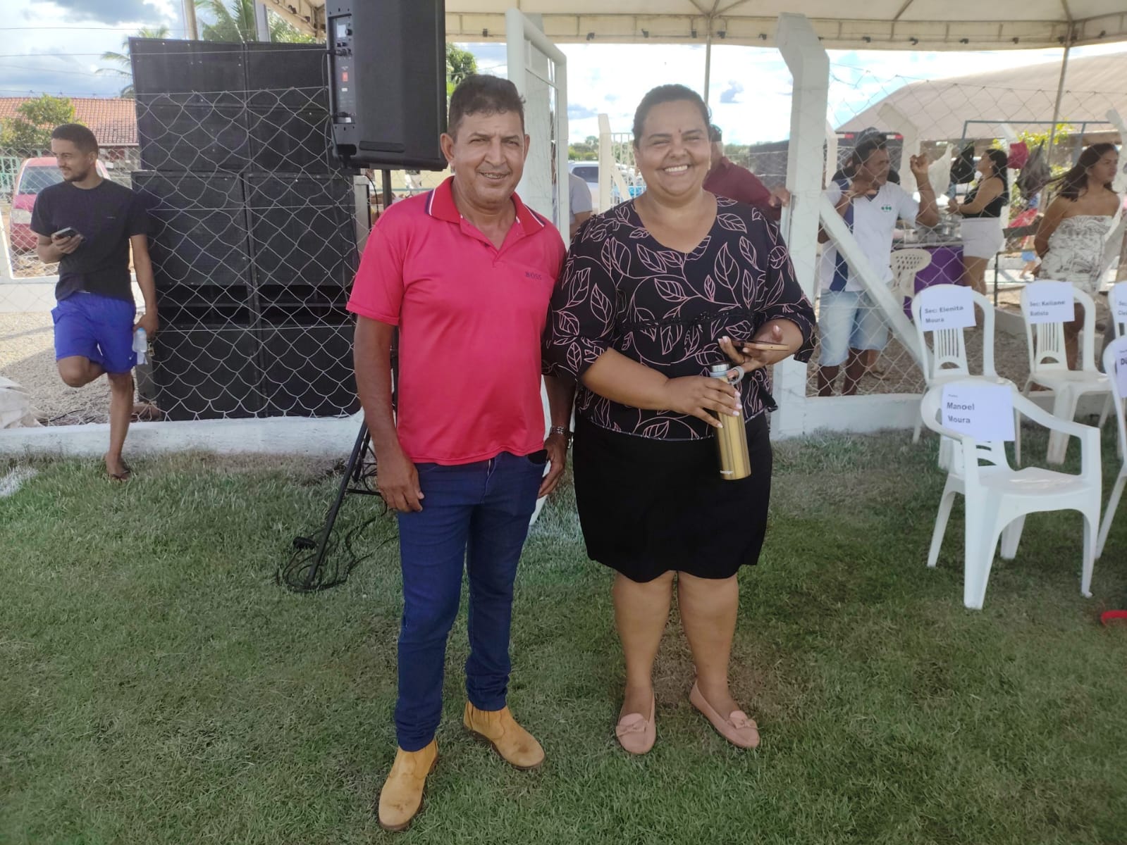 Vereadores Wilian Moura e Monica posa para foto no Estádio Mariano Pereira - Foto: Edsom Gilmar