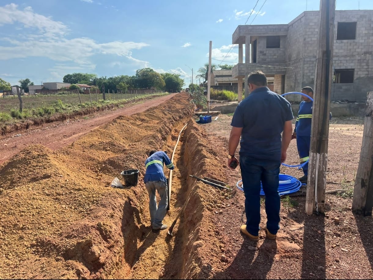O trabalho, que contou com o uso de máquinas retroescavadeiras para implantação de novos canos tubulares, tem como objetivo ampliar o acesso à água tratada para mais famílias residentes na localidade.
