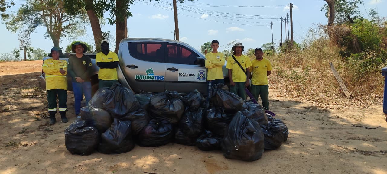 Grupo de servidores apresa lixo retirado das praias de Caseara - Foto: Ascom/Divulgação
