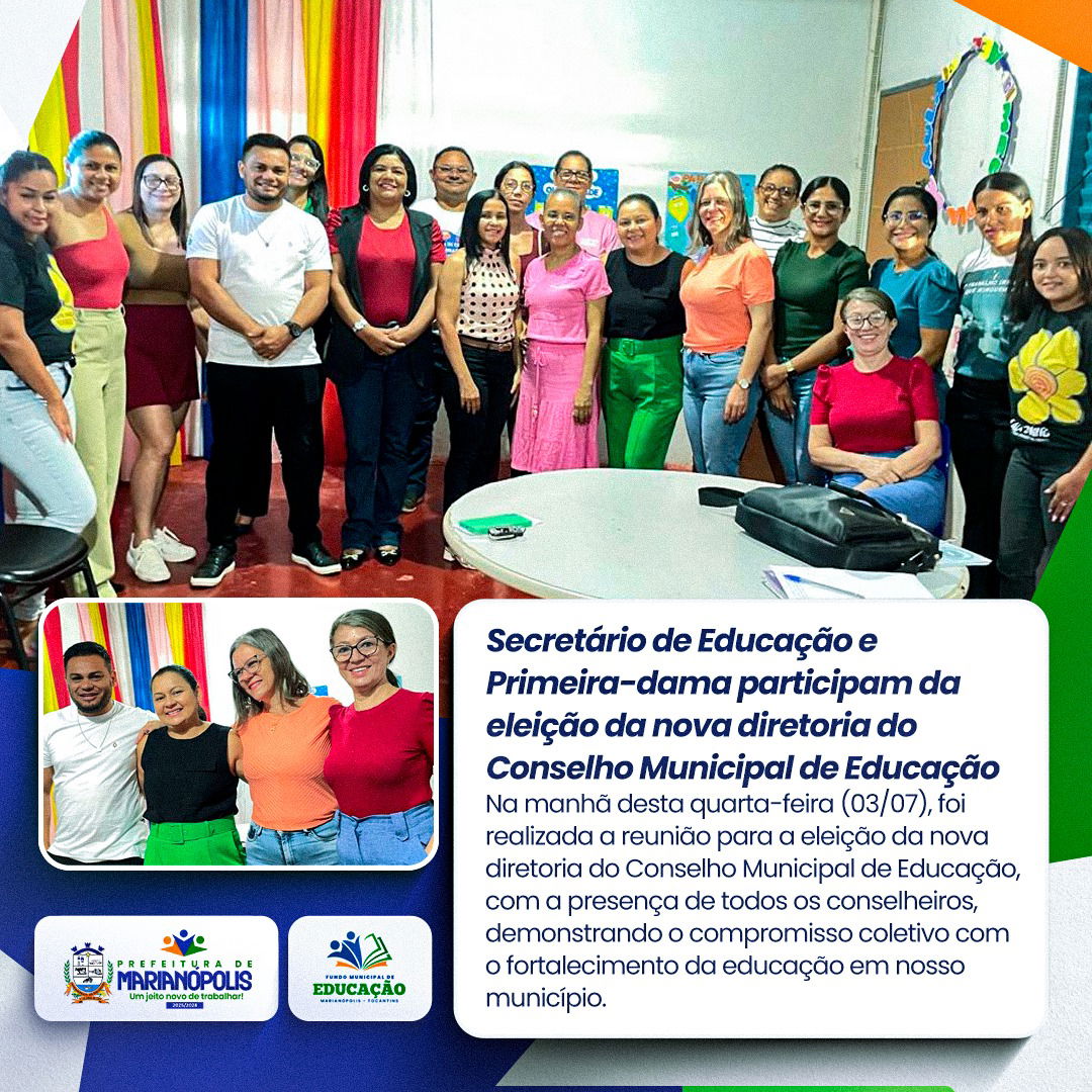 A nova diretoria do Conselho Municipal de Educação inicia agora um novo ciclo com a missão de assegurar a efetividade das políticas educacionais em Marianópolis, ampliando o diálogo com a comunidade escolar e promovendo a valorização do ensino como eixo estruturante do desenvolvimento local.