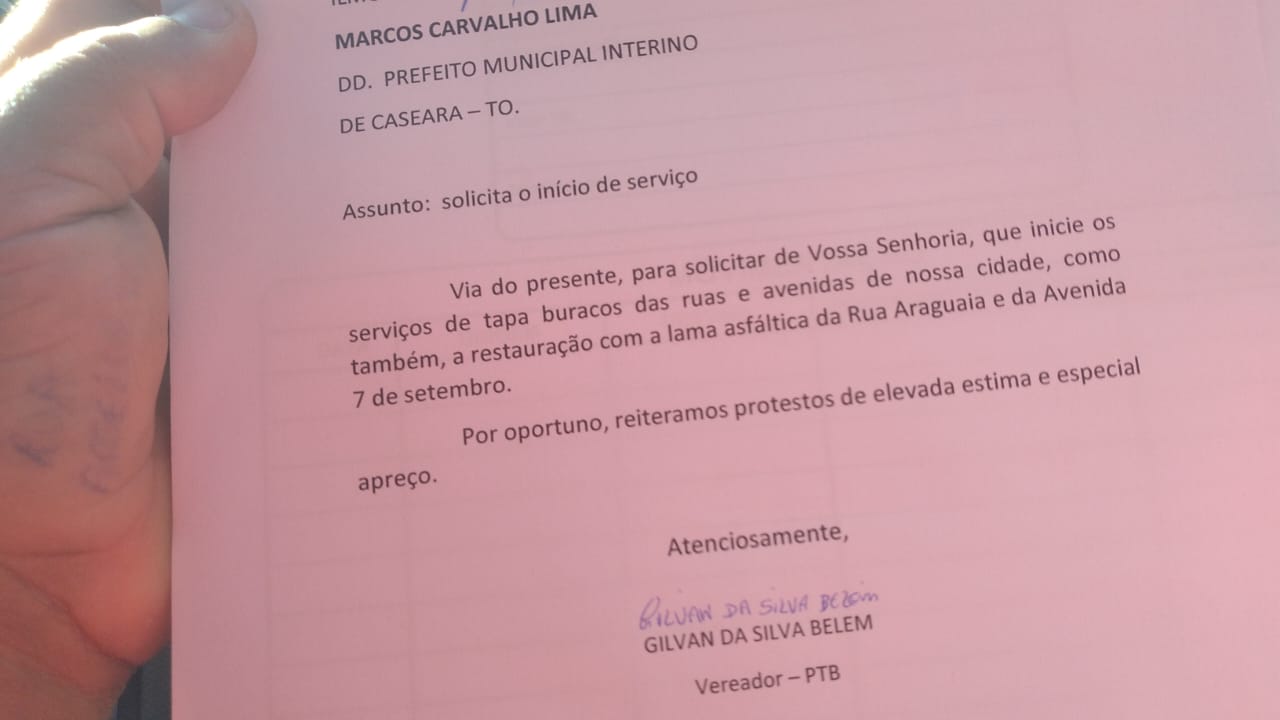 Oficio assinado pelo vereador Gilvan do Felício ao prefeito Marcos do Chico - Foto: Ascom Divulgação