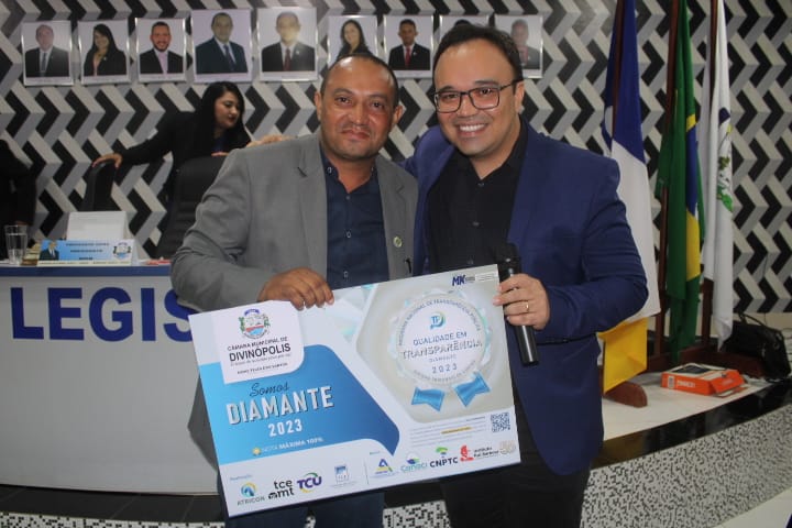 O site oficial do Poder Legislativo, atendeu 100 por cento dos requisitos, e assim foi agraciada pelo Selo Diamante de Transparência, que foi entregue pelo consultor de transparência, Marcelo Santana.