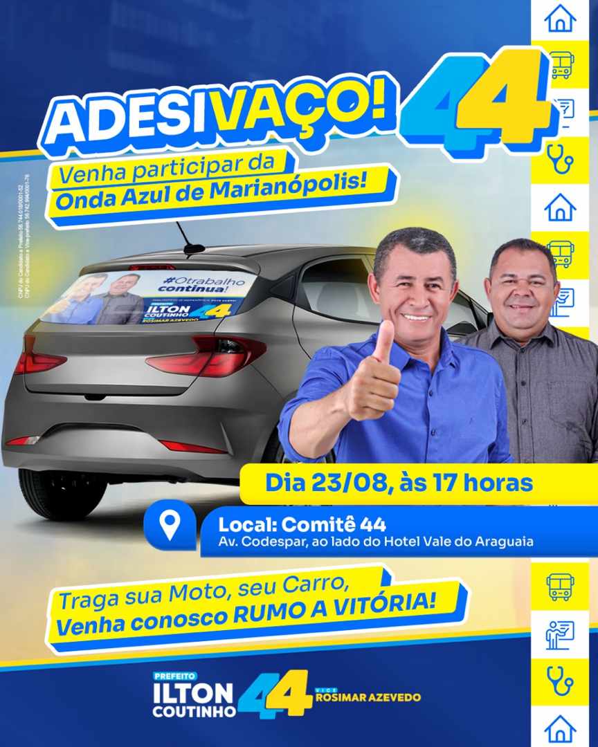 Segundo informações da assessoria de Coutinho, o evento incluirá várias atividades. Após a cerimônia de abertura do comitê, seguida de carreata “adesivaço”, seguida de uma reunião política. A expectativa é durante a reunião, os candidatos Ilton e vereador e candidato a vice-prefeito Rosimar Azevedo (UB), que concorre ao cargo de vice-prefeito, farão pronunciamentos sobre as propostas e plano de governo e a apresentação de idéias para o futuro de Marianópolis.