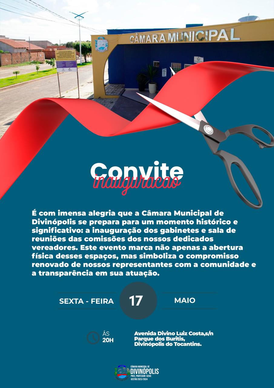 O Poder Legislativo de Divinópolis do Tocantins, informou na última semana que, em 17 de maio de 2024, serão inaugurados os nove gabinetes dos parlamentares e a Sala de Reuniões das comissões permanentes.
