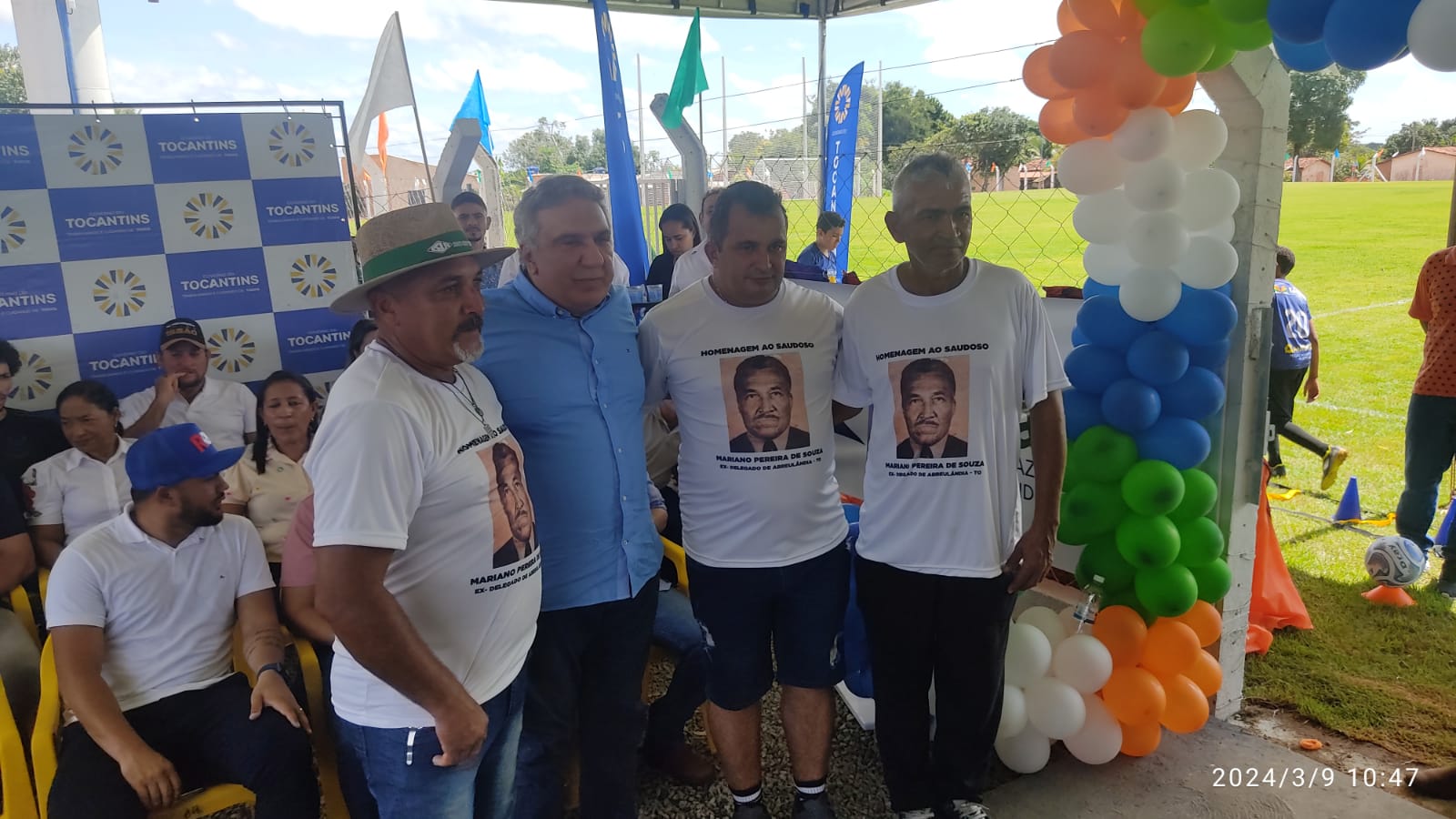 Na manhã deste sábado, 9 de março de 2024, o prefeito de Abreulândia - Tocantins, Manoel Francisco Moura (PT) e o vice-governador em exercício de Laureslz Moreira (PDT) reinauguraram o Estádio Municipal Mariano Pereira, localizado na zona sul da cidade.