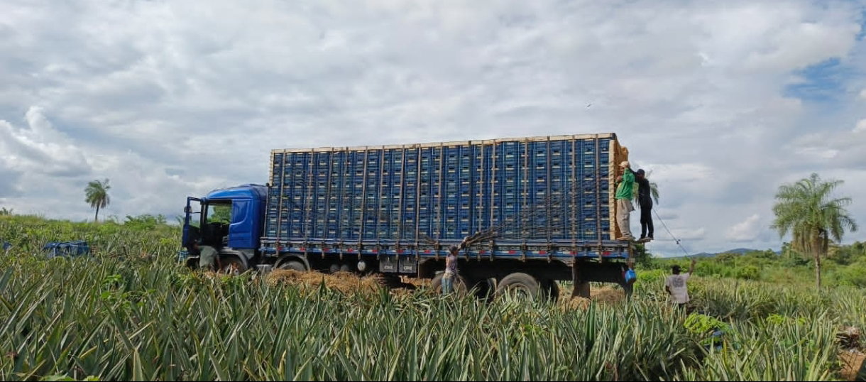 Caminhão é visto sendo carregado de abacaxi - Foto: Ascom/Divulgação